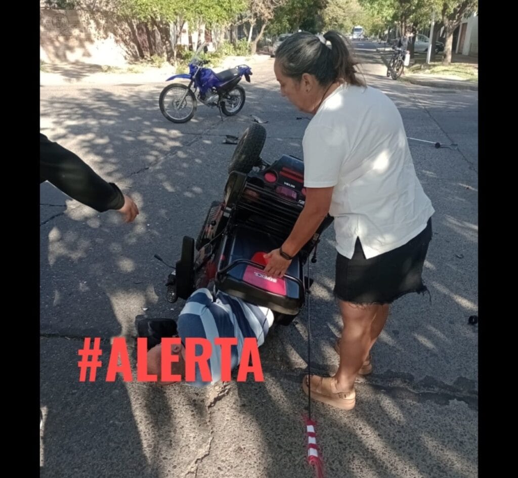 En la mañana de este jueves, un siniestro vial tuvo lugar en calles Perú y Godoy Cruz de San Rafael. Allí un hombre en silla de ruedas eléctrica cruzaba la calle cuando fue embestido por un auto Toyota Corolla.