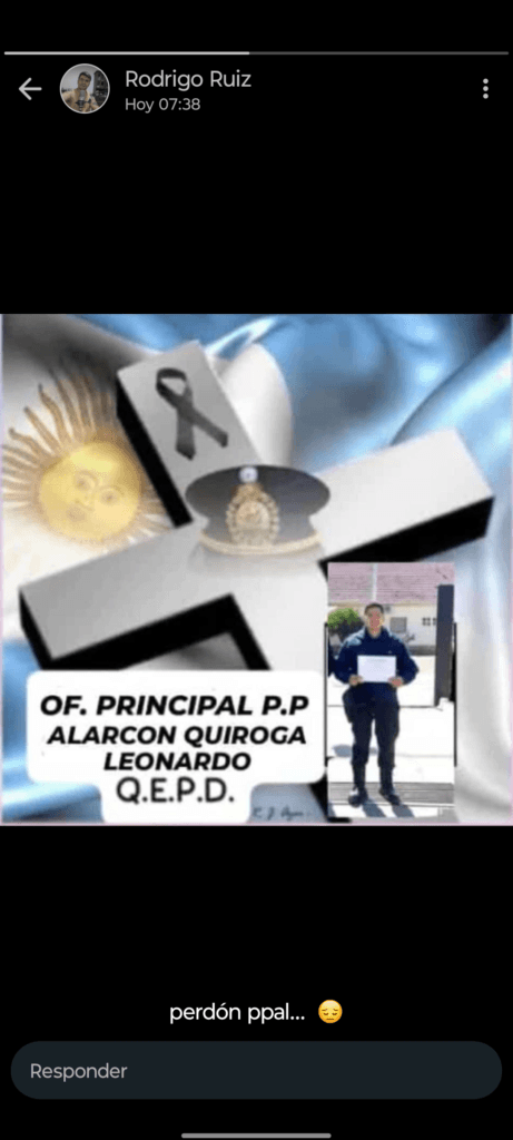 Mientras que en la mañana de este sábado, se confirmó que el efectivo herido, el oficial principal Leonardo Alarcón Quiroga (35), también falleció en el Hospital Central donde había sido trasladado con pronóstico reservado. Era oriundo del Valle de Uco y lo despiden a través de las redes sociales.