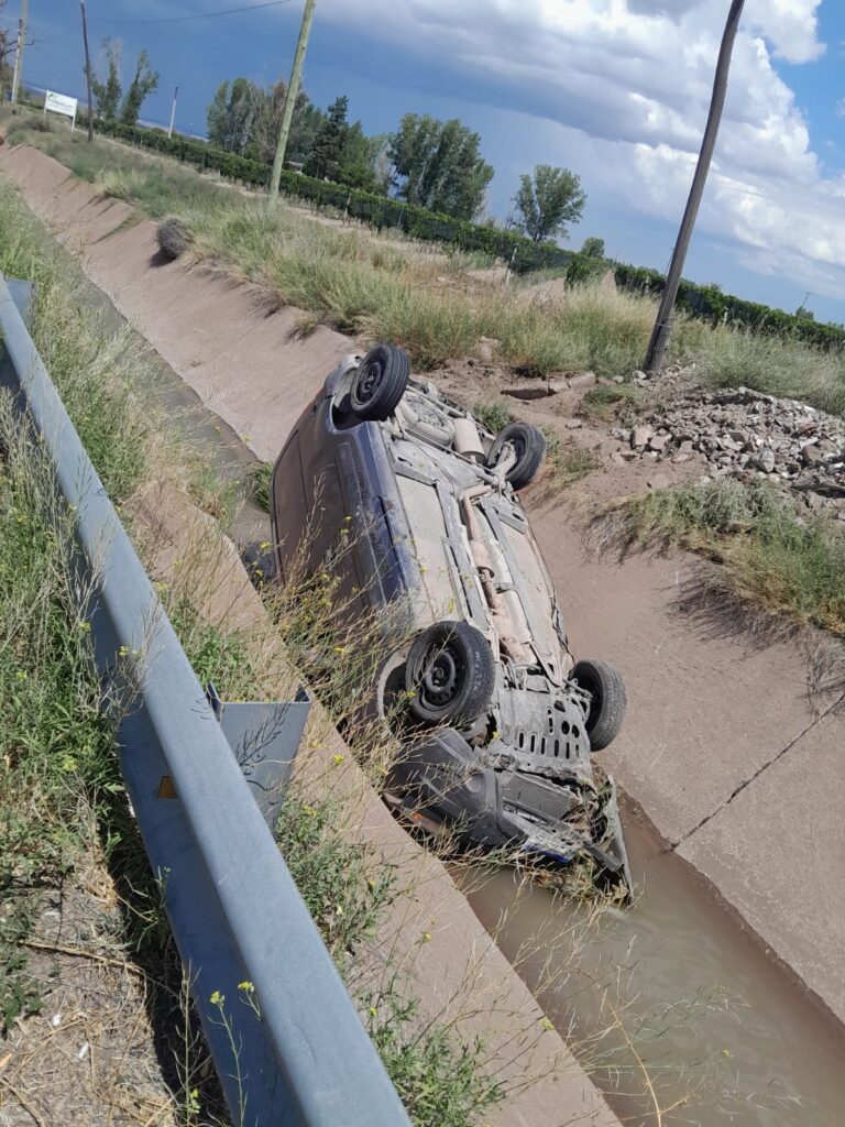 Sobre la mecánica del accidente, el conductor relató que al abrir la ventanilla le ingresó un insecto al ojo, por lo que pierde el dominio. En una maniobra peligrosa, derrapó hacia el cardinal sur, quedando en el Interior del canal de riego. Como resultado los tres ocupantes resultaron con heridas.