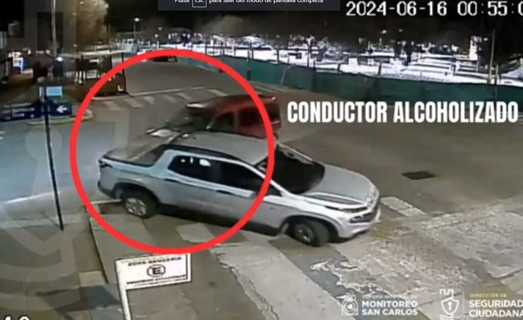 Las cámaras de seguridad del municipio de San Carlos, captaron un nuevo siniestro vial. Donde un conductor manejaba bajo los efectos del alcohol una Renault Kangoo, que circula a alta velocidad y no detuvo su marcha en la intersección de calles San Martín y Julio Balmaceda de La Consulta, impactando con una camioneta.