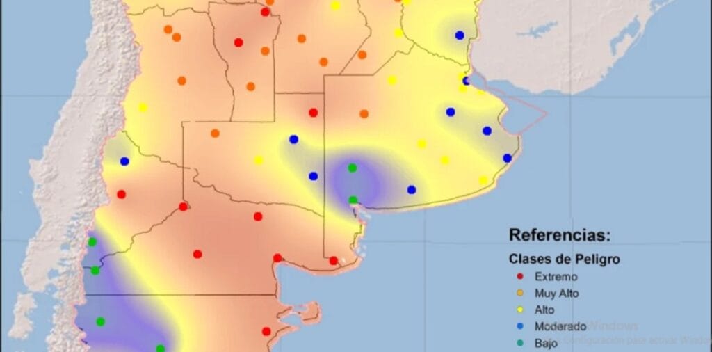 En el Índice de peligro de incendio entregado por el SMN marcó que en Mendoza los posibles focos de incendio se encuentran en el centro y norte.