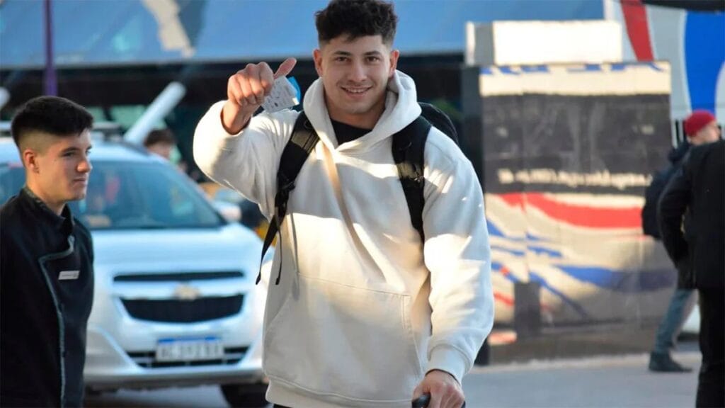 En la foto, Martín Bogado saluda a la gente al bajar del avión.