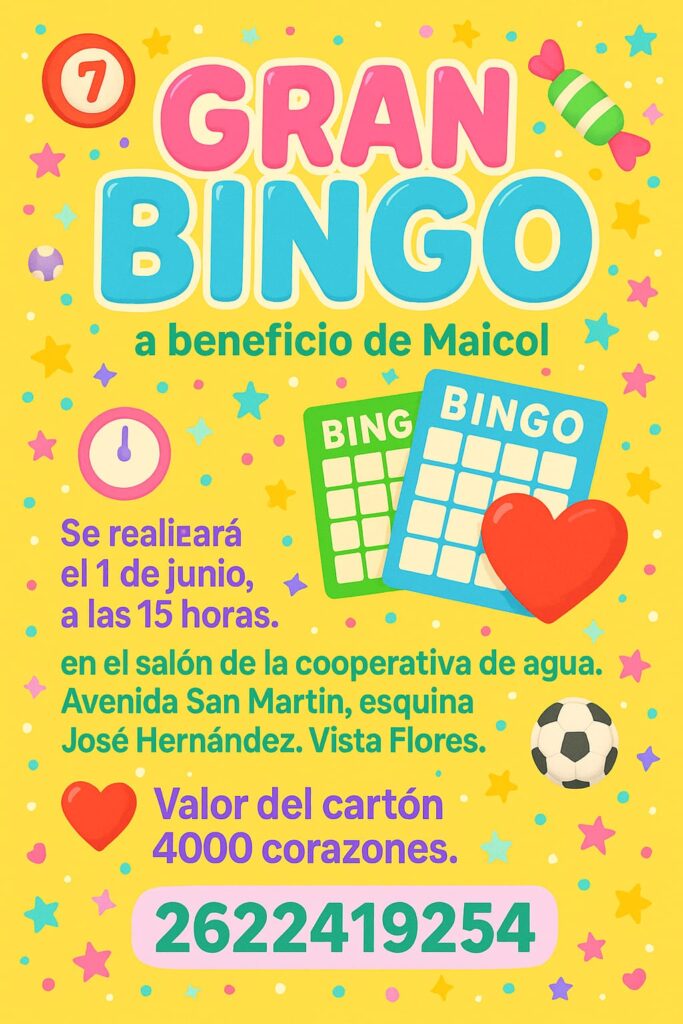 El cartón tiene un valor de 4.000 corazones y pueden solicitarlo a los números 2622419254 o 2622371686.