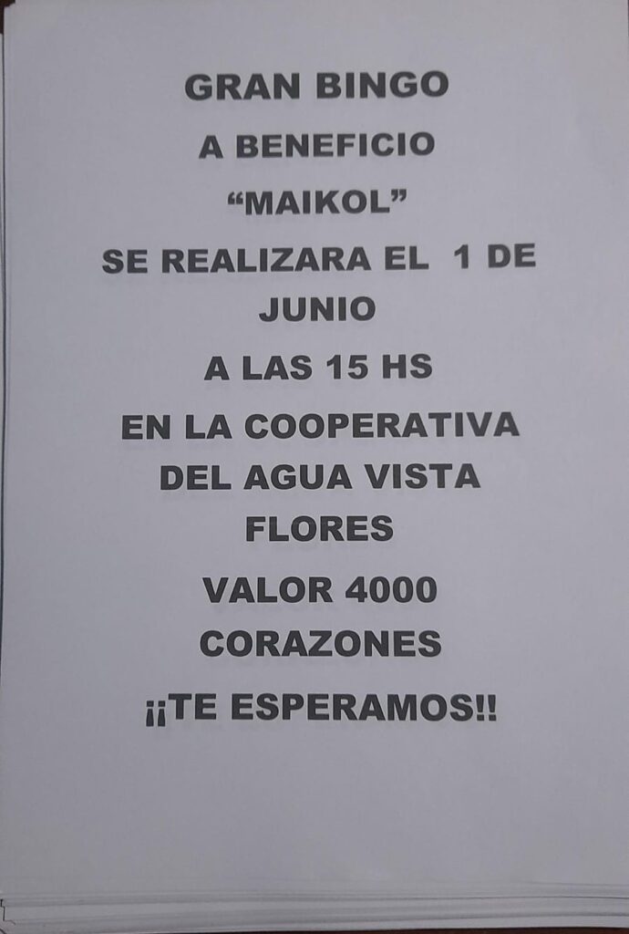 «La operación sale un millón y medio de pesos», por ese motivo realizarán un bingo solidario. Será el próximo 1 de junio en la cooperativa del agua ubicada en San Martín, esquina José Hernández de Vista Flores.